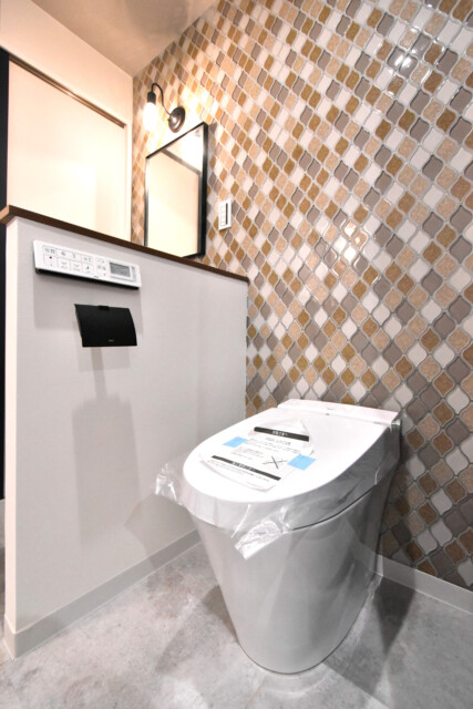 トイレはINAX製の洗浄機能一体型。タンクレスなので周りも広々、お掃除もしやすくなっています。