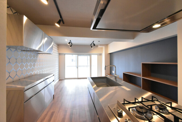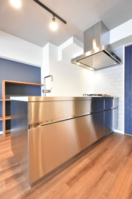 キッチン上部についたスポットライトも雰囲気があってステキです。