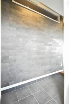 縦に広くスッキリとした玄関ホールです。右側にはたっぷり仕舞えそうなトールサイズの玄関収納があります。