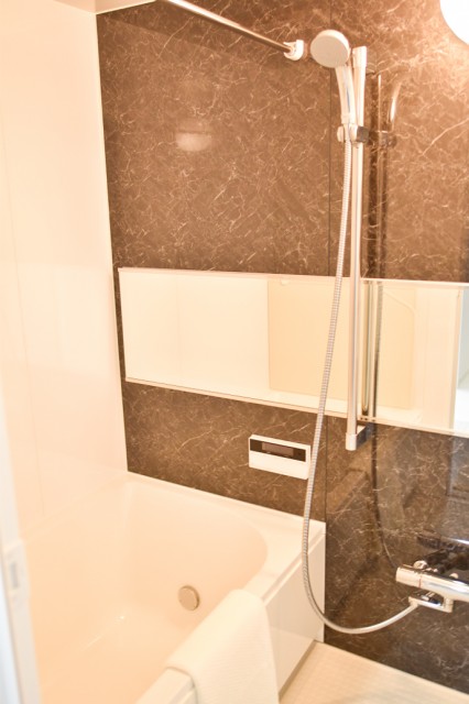 バスルームは追炊き、浴室換気乾燥機能付き。乾燥機があれば雨の日や夜のお洗濯も安心。カビの発生もグンと減ってお掃除も簡単になりますね。