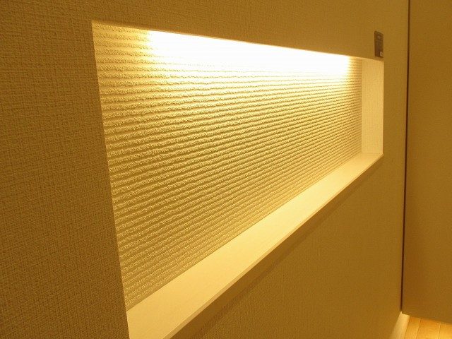 シューズBOX横の壁面にはちょっとした小物が飾れるニッチになっています。お好みのインテリアを飾れば手軽に印象的な空間に♪