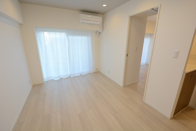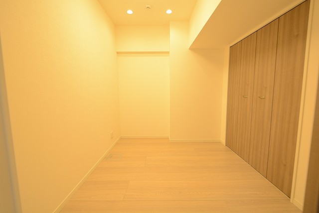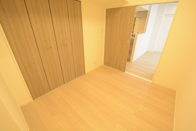 DKに面したお部屋です。窓はありませんが、寝室にすると思えば暗くて静かなのはかえってプラスポイントなのかもしれませんね。クローゼットはフルオープンになるタイプ。収納力ではウォークインクローゼットに敵いませんが使い勝手なら負けませんよ。