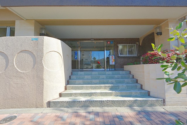 エントランスは階段を数段登った先。