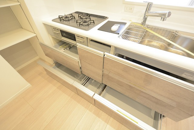 シンク下の収納は引き出しタイプです。