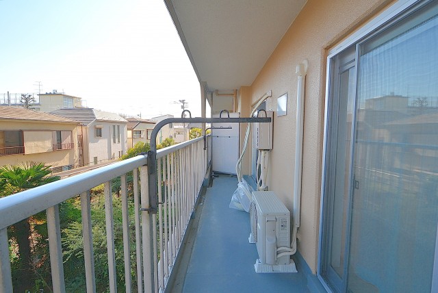 バルコニーの外は戸建が建ち並ぶ風景。高い建物がない分、人目は気にならなさそうです。