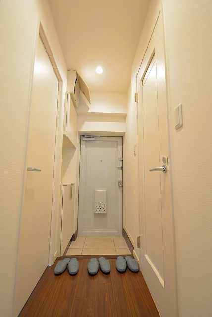 エレベーターあり。共用廊下は内廊下タイプになっています。