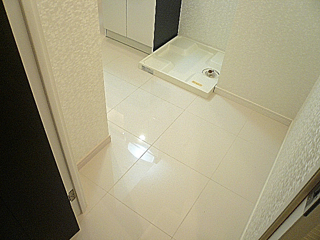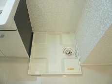洗濯機置き場です。洗剤などはお隣の洗面化粧台下部の扉の中へ置けると出し入れ便利かと思います!