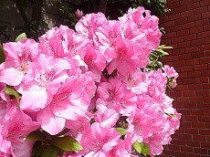 アプローチ沿いにある花壇には、癒しの緑があり鮮やかなつつじが咲いています。