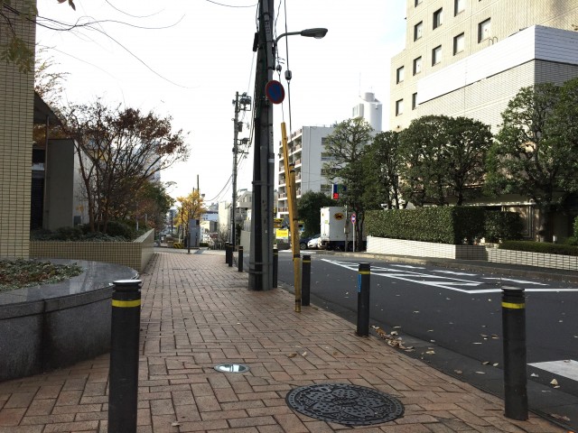 少し坂を下ったところにあります。坂はそのままずんずん続いていきます。下り始めてすぐのところで助かりました!!ちなみにこちらの坂は、「東京富士見坂」の一つだそうです。天気が良い日には富士山も見えるようです♪♪
