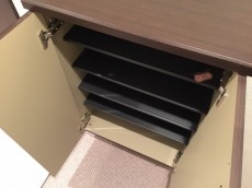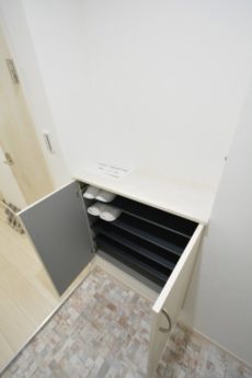 玄関の右側にはロータイプのシューズボックスがあります。少し小さめですが、可動式の棚でブーツの収納もOK♪♪シューズボックスの上のカウンター部分はちょうどよいディスプレイスペース。インテリアや植物などを置けば華やいだ雰囲気に変わりそうです♪♪