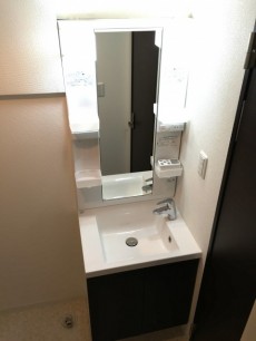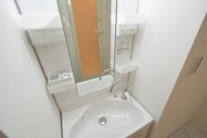 鏡はミラーキャビネットになっているのでハブラシや基礎化粧品といった洗面関係の小物はこちらに入れておくことができます。