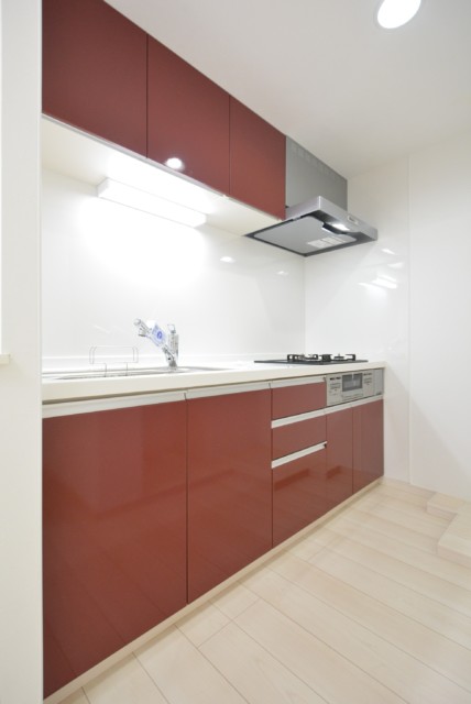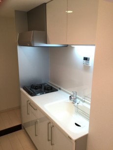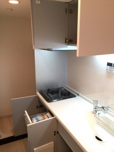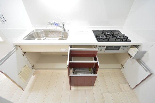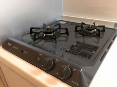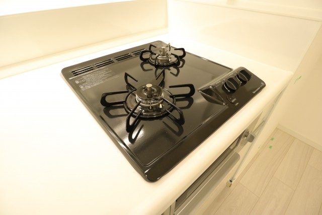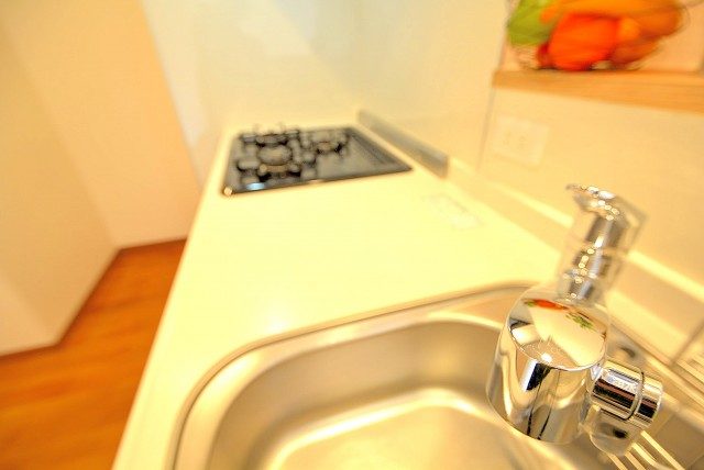 コンロは2口。シンクは広めのサイズです。ワークトップが狭いのでお料理が好きな方には少し物足りないかもしれません。