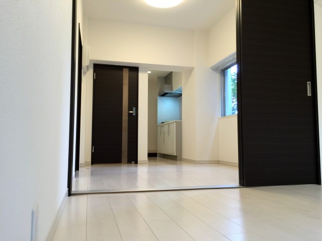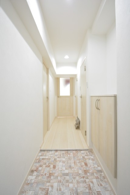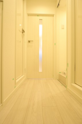 玄関を開けると、生まれ変わったばかりのキレイなお部屋が出迎えてくれました☆白を基調にした明るい素敵な玄関で、お部屋も期待できそうです(●´∀`)