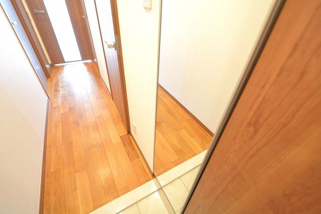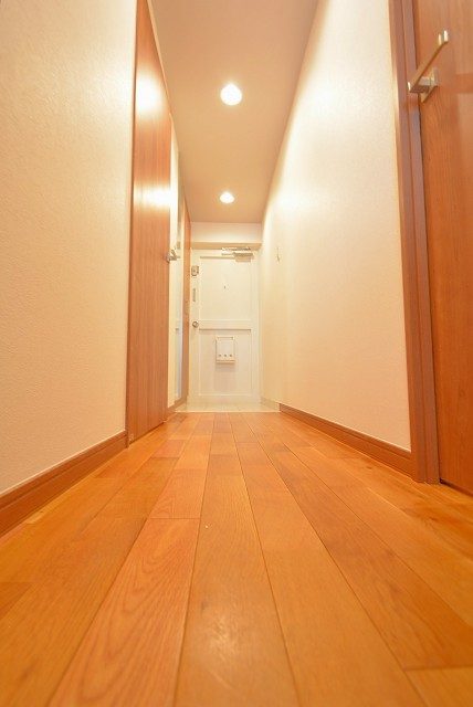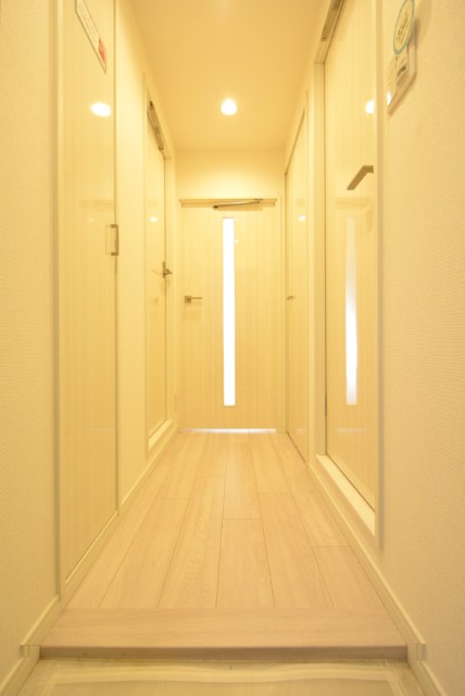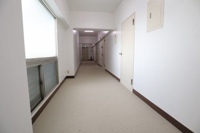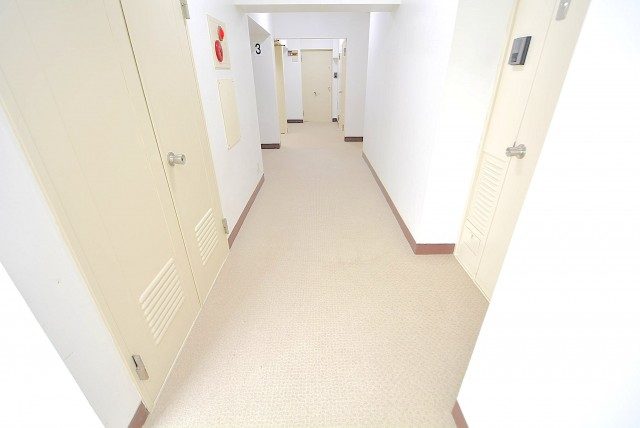 エレベーターを降りると内廊下が続きます。内廊下なので雨の日も安心ですよ♪