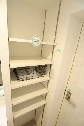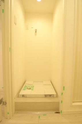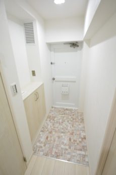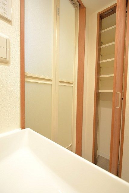 洗濯機置場には棚等が無いので棚を設置したり、突っ張り棒で収納を作ったりと工夫したいですね (●´∀`)