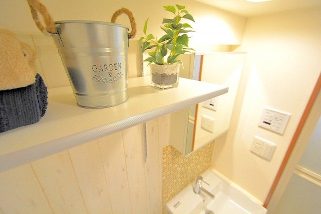 吊戸棚も付いているのでトイレットペーパーといった消耗品などの収納場所にも困りませんね。