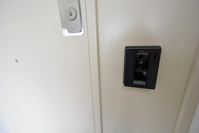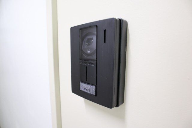 玄関の外にはカメラ付きのインターフォンが付いています。