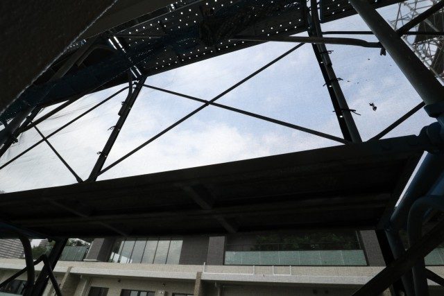 ちょっと見にくいですが、上を見ると空が見え、とても開放的です。