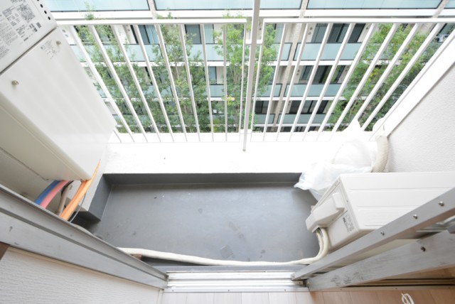 最後にバルコニーへ出てみます。2.95㎡の北東向きのバルコニー☆陽当りはあまり良くないですかね。