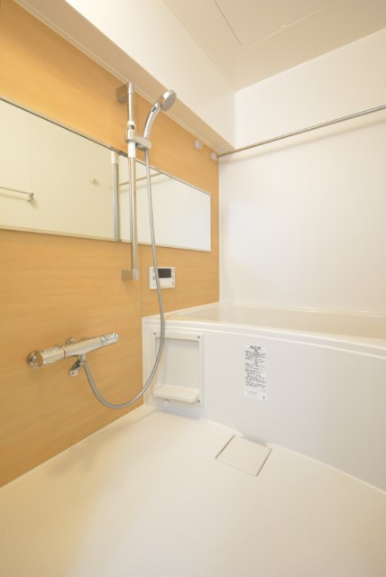 浴室はベージュの木目パネルに囲まれた落ち着いた雰囲気。リラックスしたバスタイムで一日の疲れも洗い流せますよ。便利な追い焚き機能も付いています。