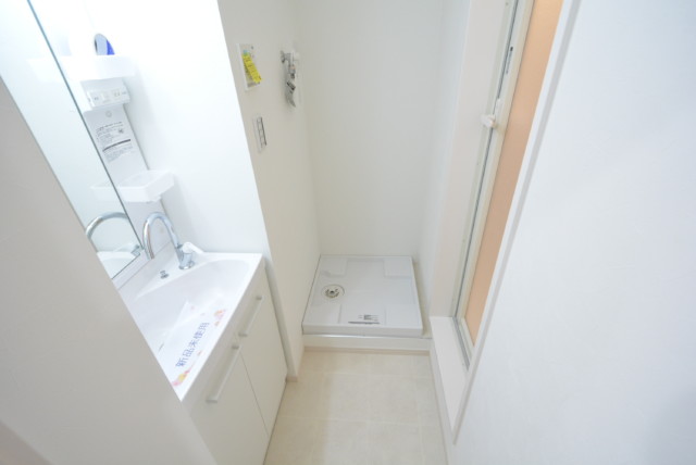 玄関から一番近いドアを開けると洗面室です。洗濯機も置くことができるようになっていますね。