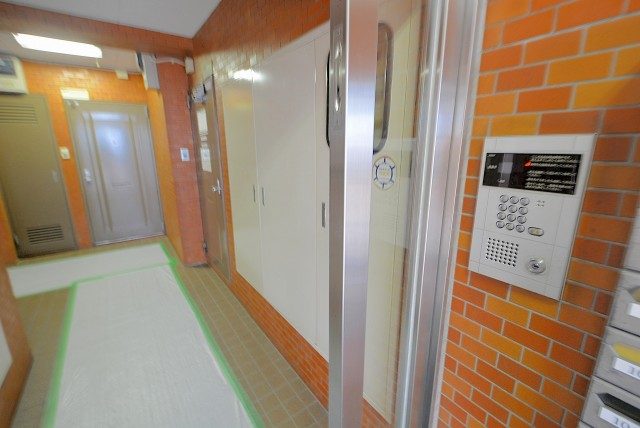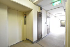 エレベーターはエントランスを入り、1階のお部屋の前を通過したところにあります。