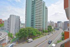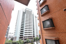 目の前には建物が建っていて眺望はあまり期待出来ません。とはいえ、多少距離があって陽射しも入りますし、東側が抜けているので圧迫感は全くありませんよ。正面の窓が型ガラスになっているのもプライバシー的にGOOD!