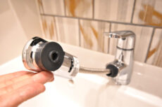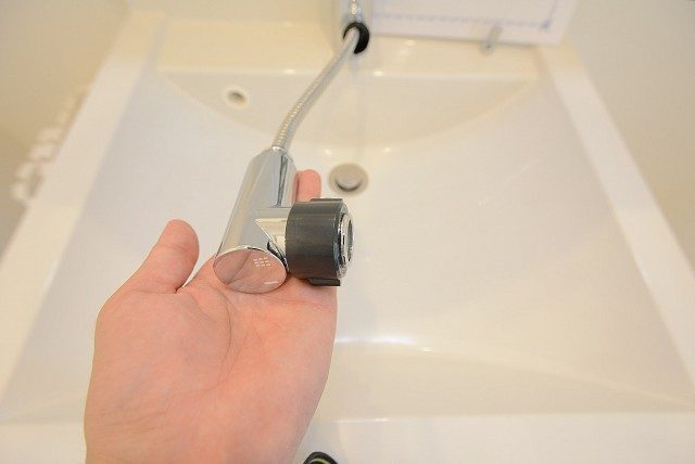 水栓はシャワーヘッドになっているので、こちらで簡単な洗髪をすることができますよ。