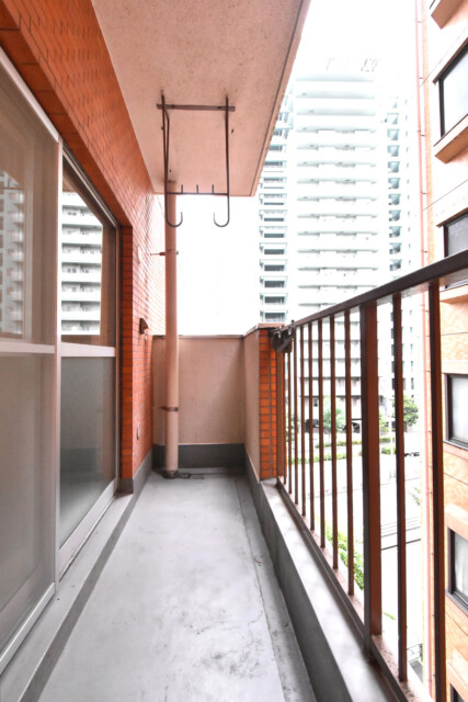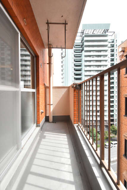 さすが南向き、陽当たりは良好です♬ 天井と手すり柵に物干し金具がふたつも付いているので、お天気の良い日には思う存分干すことが出来ますね(^^)赤レンガ風のタイルがヴィンテージ感があって素敵です。