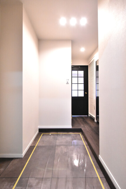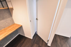 玄関は入って正面が壁になっていて廊下は横に伸びています。正面の壁にお気に入りの写真や絵などを飾ると、帰って来て目に入るたびにテンションが上がるのでおススメですよ。照明には人感センサーが設置され、自動でライトが点灯するようになっています。いつでも明るい玄関が迎えてくれるのって嬉しいですよね♬ シューズボックスは収納力のあるトールタイプ。