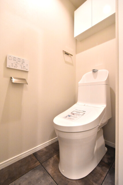 もちろん洗浄便座付き。TOTO製ウォシュレットです。今の時代無いなんて考えられませんよね・・・実は、我が家の洗浄便座がダメになり交換を待っているところ。早く来ないかな(-_-;)