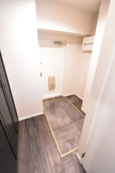 今回ご紹介するお部屋は5階、間取りは1LDK、専有面積は35.70㎡。収納豊富な、おひとり暮らしやDINKSの方におススメのお部屋です。早速行ってみましょう。