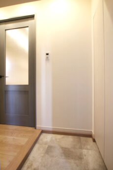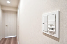 玄関ドア横にはモニター付きインターホンが設置されて、お部屋の中から訪問者を確認する事が出来ます。「はい」と返事をする前に、しっかり映像で確認しましょうね!