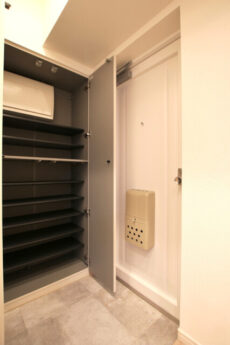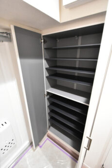シューズボックスはトールタイプ。棚は高さが変えられるのでブーツなどの背の高い靴でも収納可能ですよ。