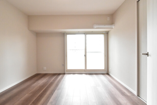 LDKと同じバルコニーに面したお部屋です。柱などの凹凸がない綺麗な形なので、家具のレイアウトもしやすそうですね。