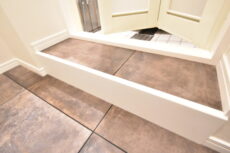 玄関ホールのブラインドを上げると洗濯機スペースになっていました。洗面室にあるイメージでしたが、こういった所にあるお部屋って意外に多いんですよ。湿気が籠りやすいのでブラインドはいいかもしれませんね。