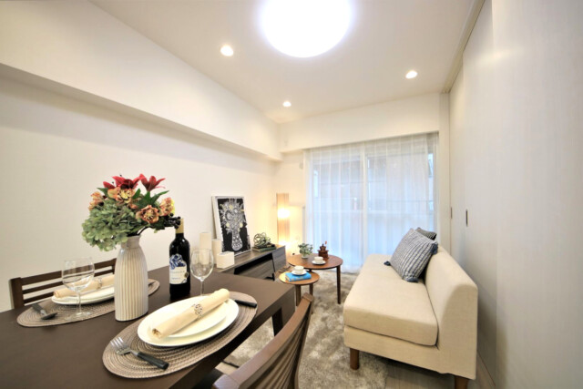 スペース的に、ソファーとダイニングセットの両方を置くのはちょっと窮屈な感じ。ライフスタイルに応じてどちらかにウェイトをおくことになりそうです。外食が多い方ならリビング重視で食事はローテーブルで、家で過ごすことが多い方なら低めのダイニングテーブルを寛ぎの場として・・・自分はどっちだろう?といろいろ考えるのも楽しいものです(*^^*)