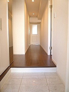 外観のように白を基調とした清潔感ある玄関ホールです。左手にはミラー付の玄関収納が設置されています。