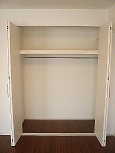 玄関入り廊下右手にある洋室5.8帖です。壁いっぱいにクローゼットが設置されています。