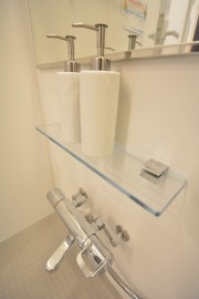 奥にある収納棚にはかさばるタオルなど仕舞えそうです。