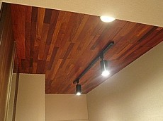 天井を見上げるとおしゃれなウッドと照明があります。中目黒にはおしゃれなショップが沢山あり、お部屋の中までもなんだかショップのような感じがします~♪