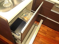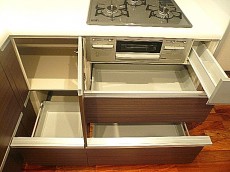 スライド式収納には奥まで仕舞えそうです。何が何処にあるかもすぐに確認でき、整理整頓もしやすいですね。
