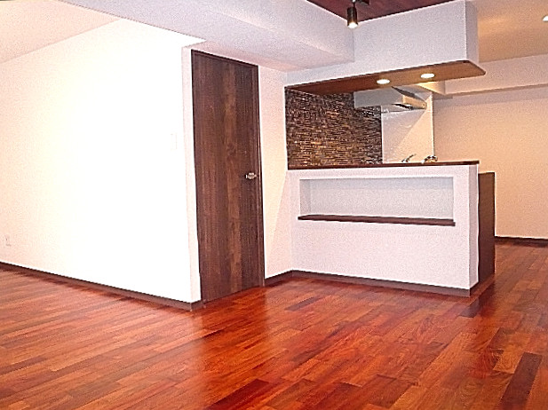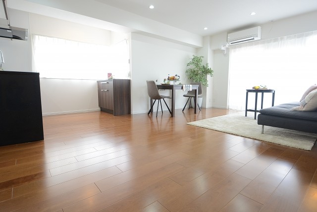 赤みのあるウッドのフローリング、17.0帖のリビング・ダイニングです。