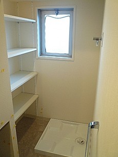 洗濯機置き場です。こちらにも調整可能な棚があります。そして明るい光と風が入る窓があります。水周りに窓があると嬉しいですね。自然換気いつでもできます!