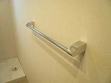 洗面化粧台背面にあるタオルハンガーです。入浴前にバスタオルなどをかけておけますね!