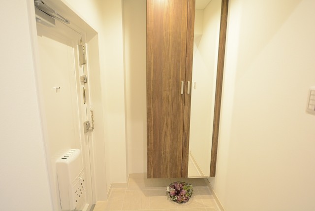 玄関を入ると左手には扉がカガミになっているトールサイズのシューズBOXが