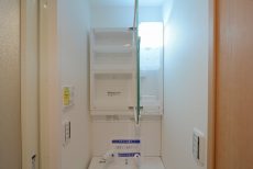 洗面室は入口入って右手に洗面化粧台と洗濯機置場、正面にバスルーム、