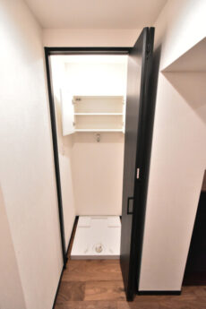 洗濯機置場の上には吊戸棚がつくられています。