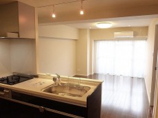 こちらはリビング・ダイニング・キッチン。縦長で家具のレイアウトがしやすそうなお部屋です。二方向に3つの窓があり、採光、通風共に良さそうでですね。さすが角部屋です♪