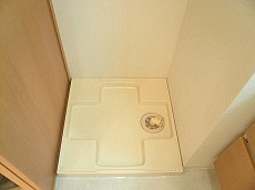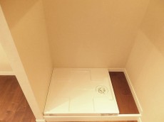 サニタリールーム入り左側にある洗濯機置き場です。収納棚などはないですが、洗面台の収納を借りて洗濯洗剤などを置いておくのも良いですね。